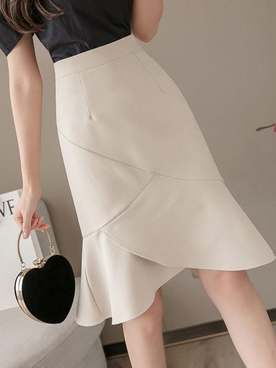 חצאית בת ים גבוהה מותן לנשים - אלגנטית באורך הברך לעבודה