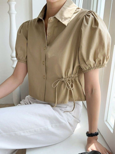 חולצת פפלום עם צווארון מעוגל מבד גס ומחוספס