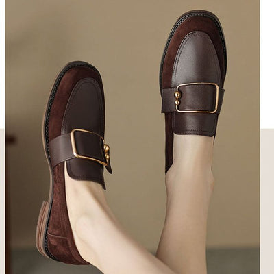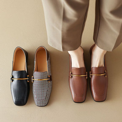נעלי מוקסינים עם עקב בלוק וחרטום מרובע