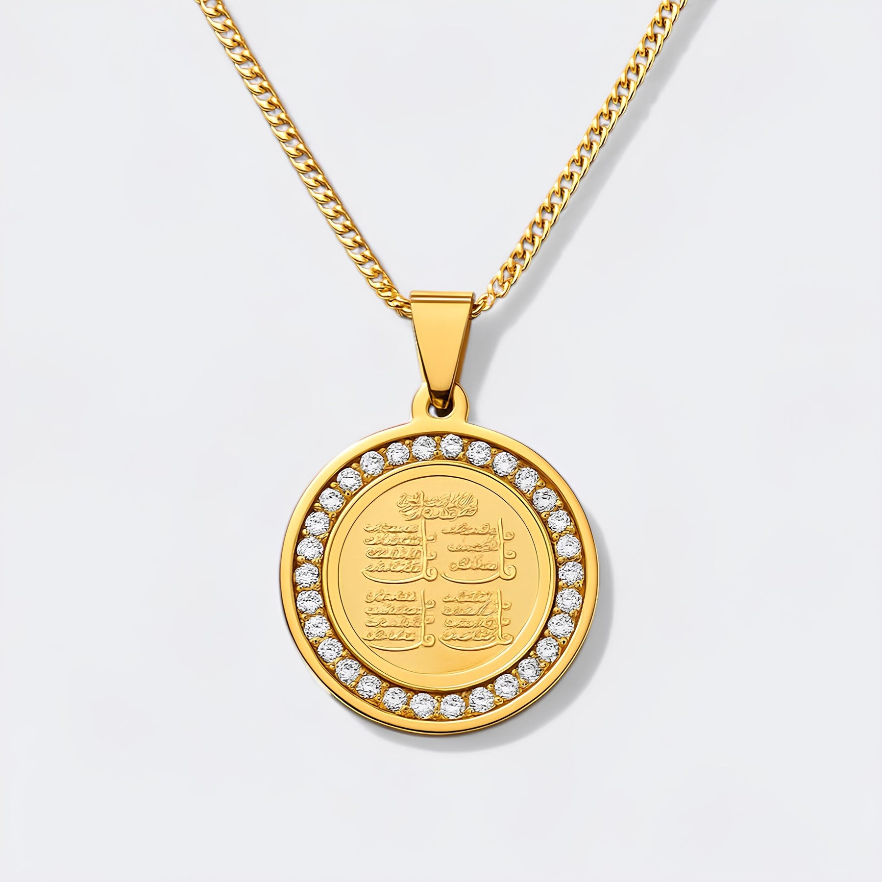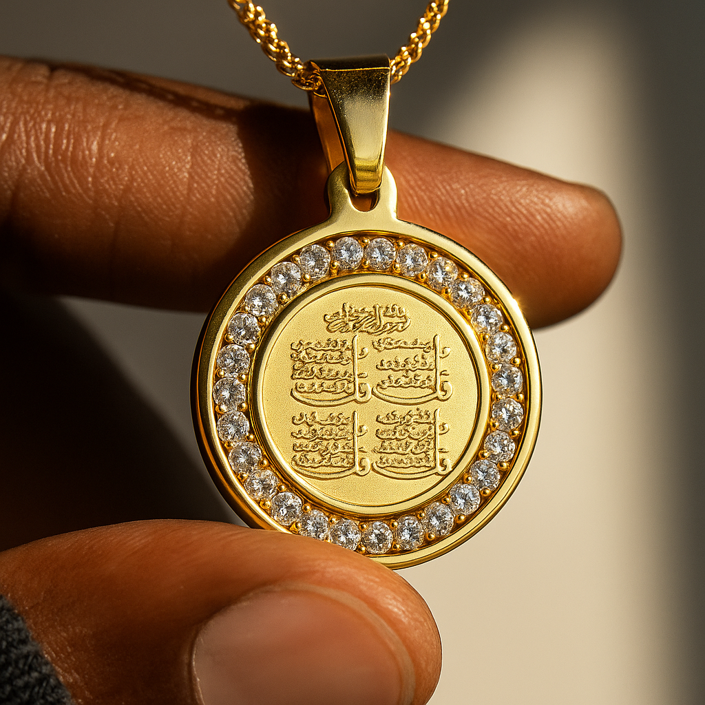 Crafted with precision, bordered in crystals, and engraved with the four surahs we turn to most. Bold in design. Unshakable in purpose.