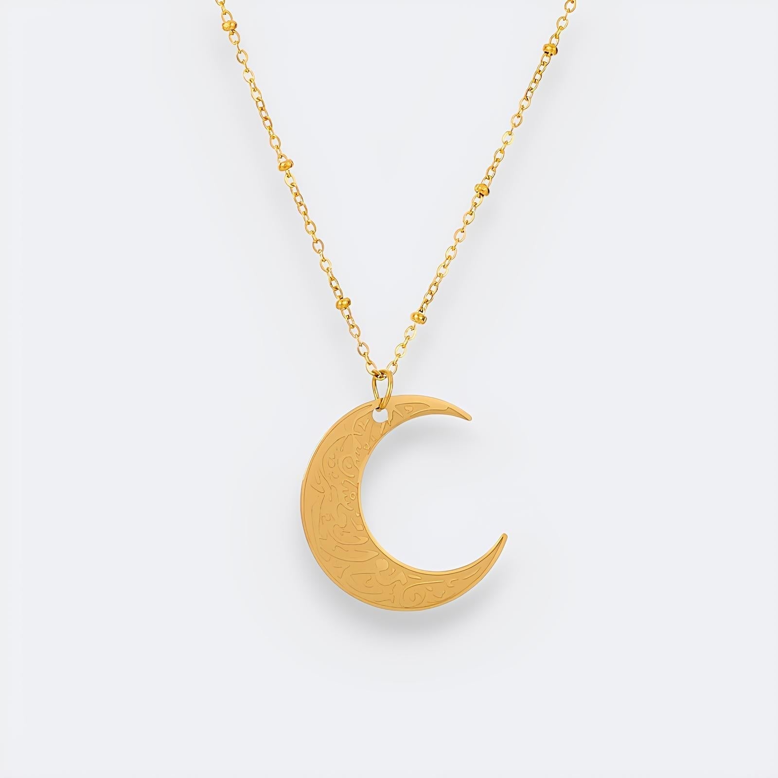 Embrace resilience with the Hardship & Ease Crescent Necklace, inspired by the Quranic verse "Verily, with hardship comes ease" (94:5). This beautifully crafted piece, adorned with intricate Arabic calligraphy, symbolizes hope and strength.